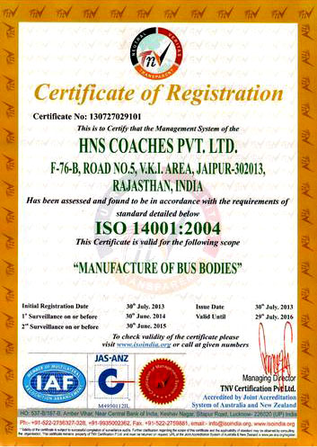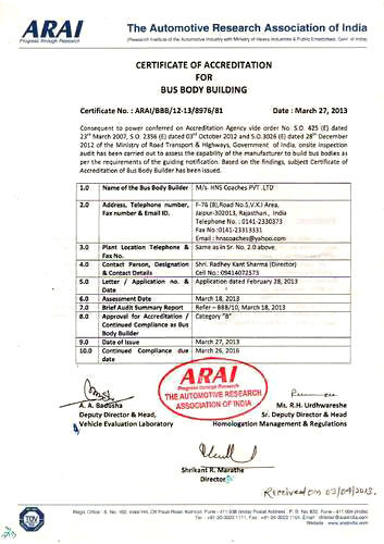 Inaugurated in 1965, at Jaipur, (Rajasthan, India), we “HNS Coaches Private Limited” are known as the renowned manufacturer and supplier of a comprehensive range of AC Bus Coach, AC Luxury Large Coach, Volvo Coach, Sleeper Bus Coach, Semi Sleeper Bus, Mini Coach, Cara Van, School Bus and Deluxe Bus Coach. Offered buses are fabricated and assembled with high precision by making use of the best quality spare parts and innovative technology under the stern vigilance of our dedicated professionals in adherence with industry quality standards. The provided buses are widely appreciated among our esteemed clients for their Salient features such as optimum functionality, optimum performance, maintenance free, robust construction, long functional life, etc. In addition to this, we make available these buses in various models and technical specifications as per the variegated requirements of our esteemed clients. Clients can easily avail the4se buses from us at rock bottom prices within the promised time span. |